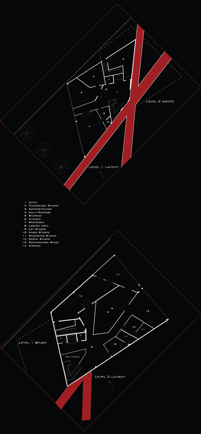The goal of the architecture is to excite, inspire and support community members and serve as a unifying symbol of all the present assets and instigate new possibilities in the community. Providing a space for music, art, dance and other, this facility becomes a support system, cultivating neighborhood pride. The visual statement explores an hip-hop aesthetic that involves elements of adaptability, fluidity, reclamation, and transparency. My precedent studies included The Wall of Respect by various Chicago Artist, DeYoung Museum by Herzog DeMeuron, Fun Palace by Cedric Price, Ibirapuera Park by Oscar Niemyer/Roberto Burle Marx, Olympic Sculpture Park by Weiss Manfred, and MASP by Lina Bo Bardi.